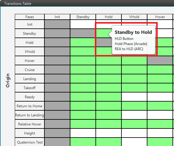 Automations menu - Phase transitions table In this table, the transitions between each phase can be visualized.