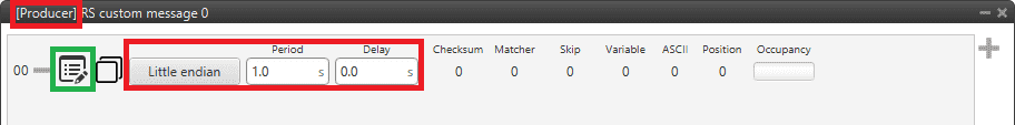 Delay - Producer: After sending the message, the Serial bus will be disabled for this amount of time in order to allow half-duplex communication. Warning Delay time must not be longer than the specified period, since this will result in out-of-order message sending.