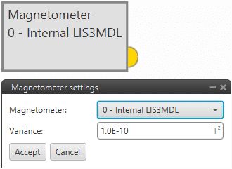 In this panel, the user can only modify some configurable parameters, the selection of the magnetometer and the configuration of the Variance are done in the Magnetometer - Sensors blocks of the Block Programs menu.