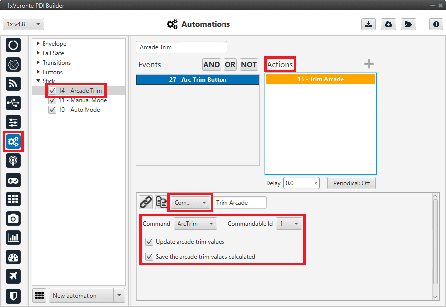 The ArcTrim button allows the user to trim the stick signal directly from the stick position, before the operation, by simply clicking on it. In addition, this button is considered as an 'action button' that can be embedded in the Veronte Panel.