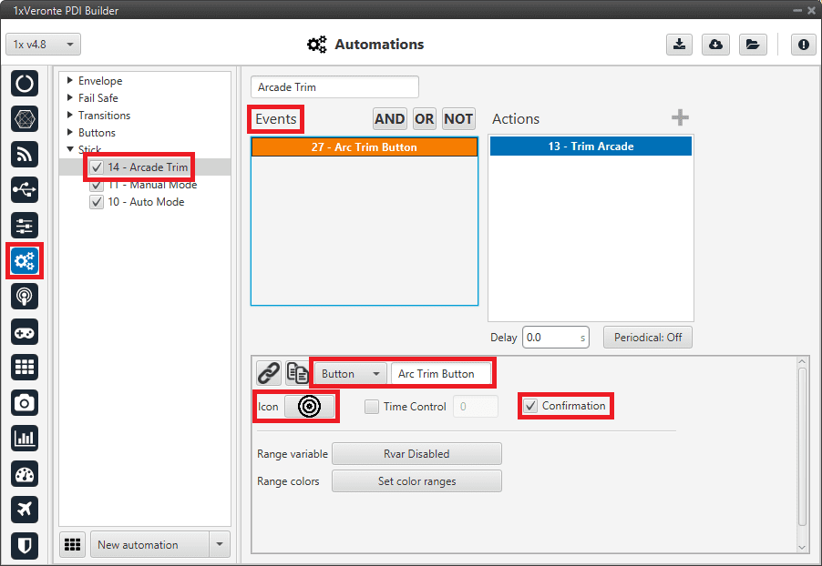 In addition, it is recommended to activate the Confirmation checkbox, to avoid trimming the stick by mistake.