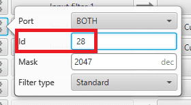 Configure the mailbox to receive a message with the appropiate ID (in this example ID 28 has been configured):