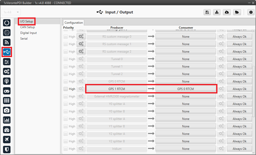 Therefore, connect the GPS 1 RTCM producer to the GPS 0 RTCM consumer.