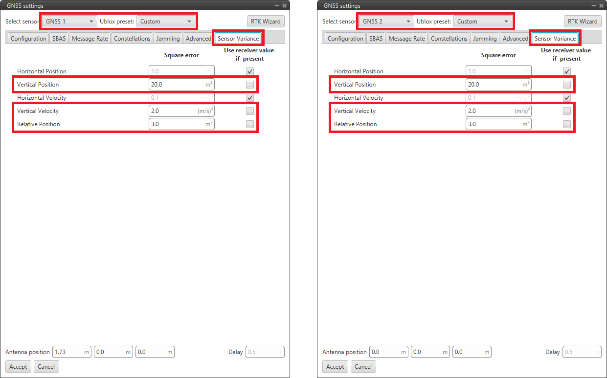 Note that the GNSS index starts from 0 in this panel so it will be GPS 1 RTCM = GNSS2 sensor and GPS0 RTCM = GNSS1 sensor.
