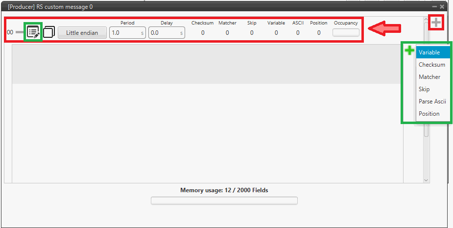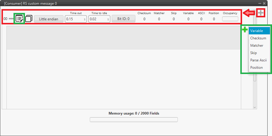 icon) and a pop-up window will be displayed.Configure the message reading as desired. The different options and parameters to be configured are explained in the Serial Custom Messages - Input/Output section of this manual.