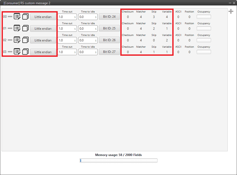 To do this, add in RX fields the same messages that have been configured in the MC110 PDI Builder as TX Messages: