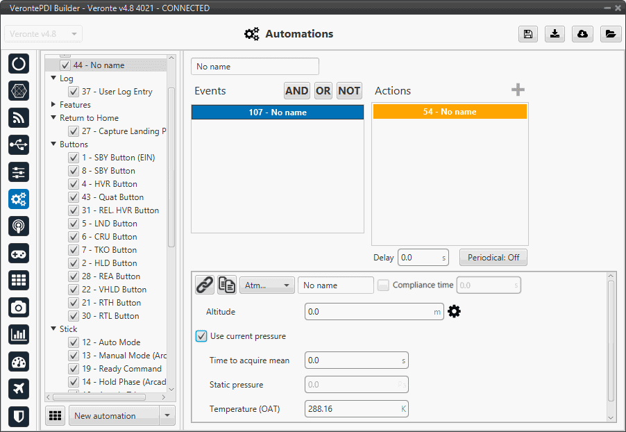 This action allows the atmosphere calibration in the same way as shown in the Operational panel of Veronte Ops (for more information about atmosphere calibration, see Veronte Ops manual).
