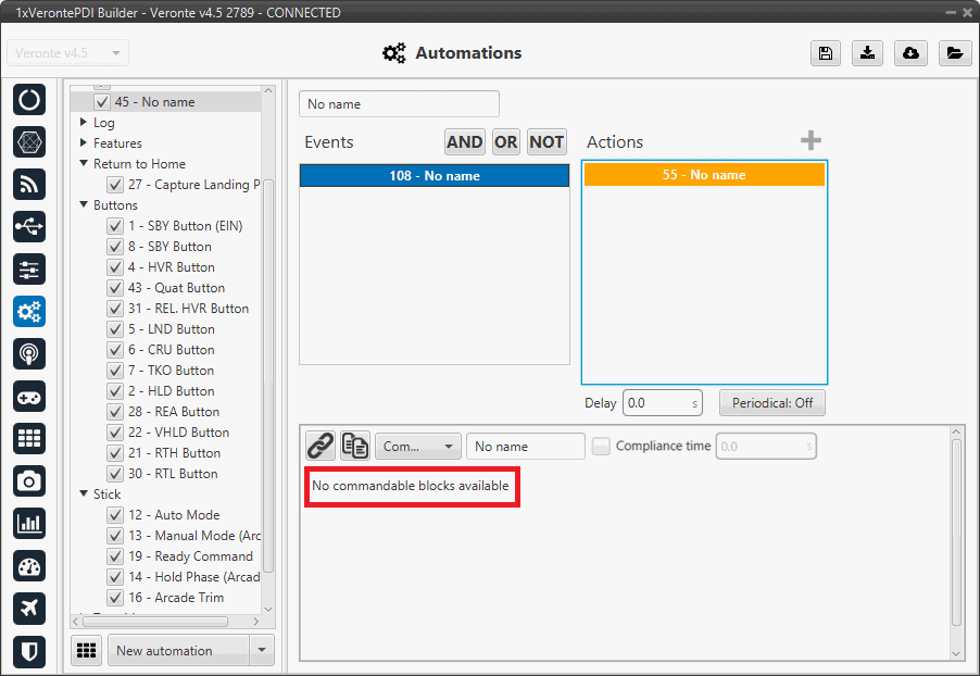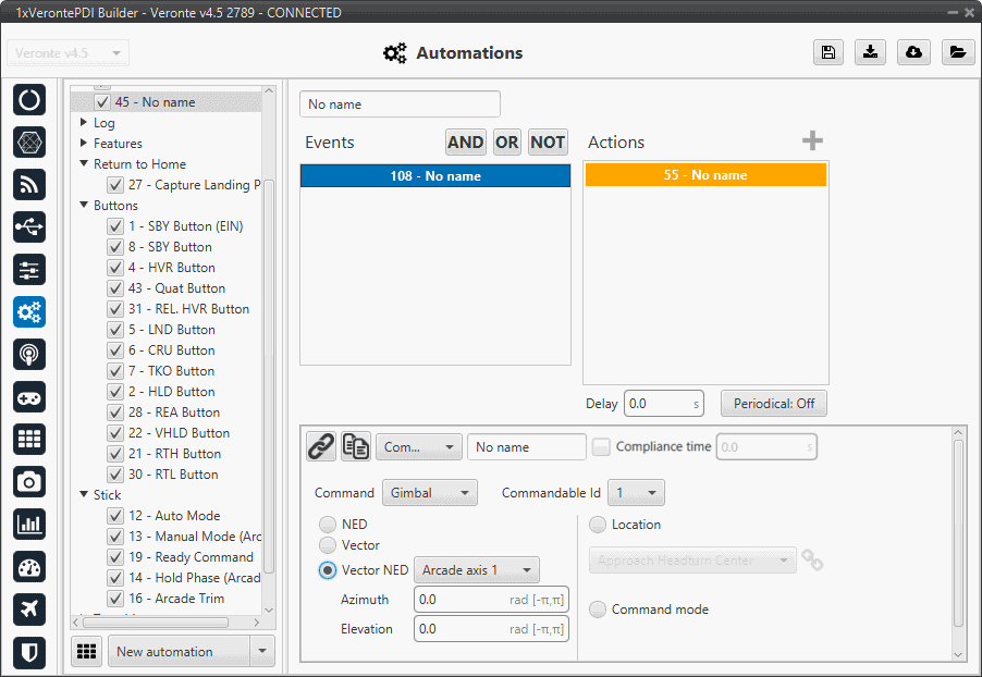• Commandable Id: Id of the commandable Gimbal block (users can look up this Id in the block to be commanded, in the Gimbal - Devices blocks of the Block Programs menu).