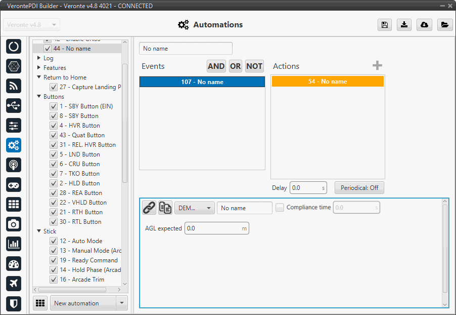 This option allows the calibration of the digital elevation model by setting the actual AGL value in the same way as shown in the Operational panel of Veronte Ops (for more information about DEM calibration click Veronte Ops manual).