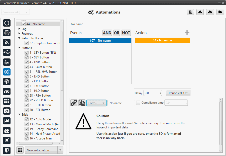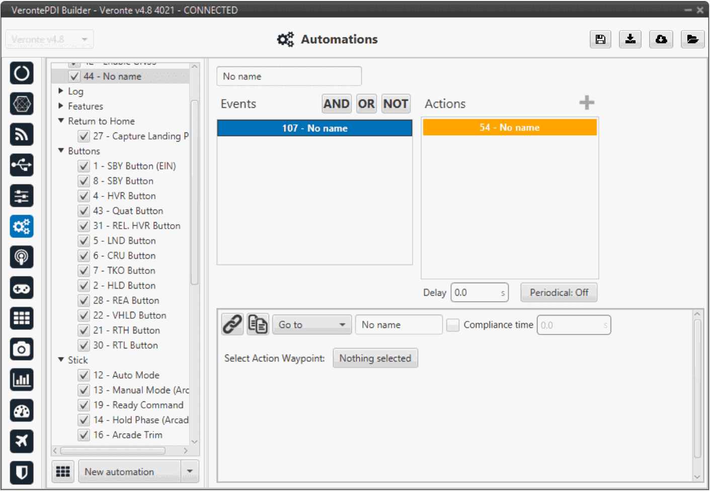 • Run + Distance/Time + Continuous: When the action is triggered, the timer will be started and will measure distance/time from that instant until the moment when the autopilot is turned off (or until another automation acts on the same timer).