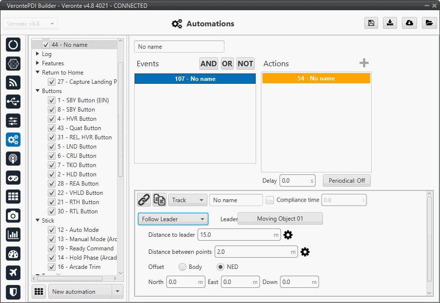 • Leader: Here is selected the object to follow, e.g. Moving Object.