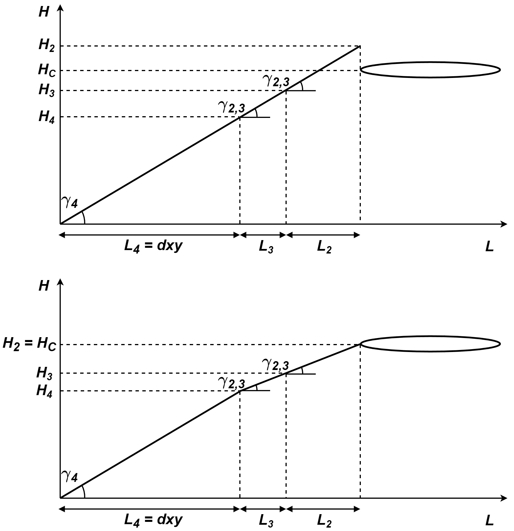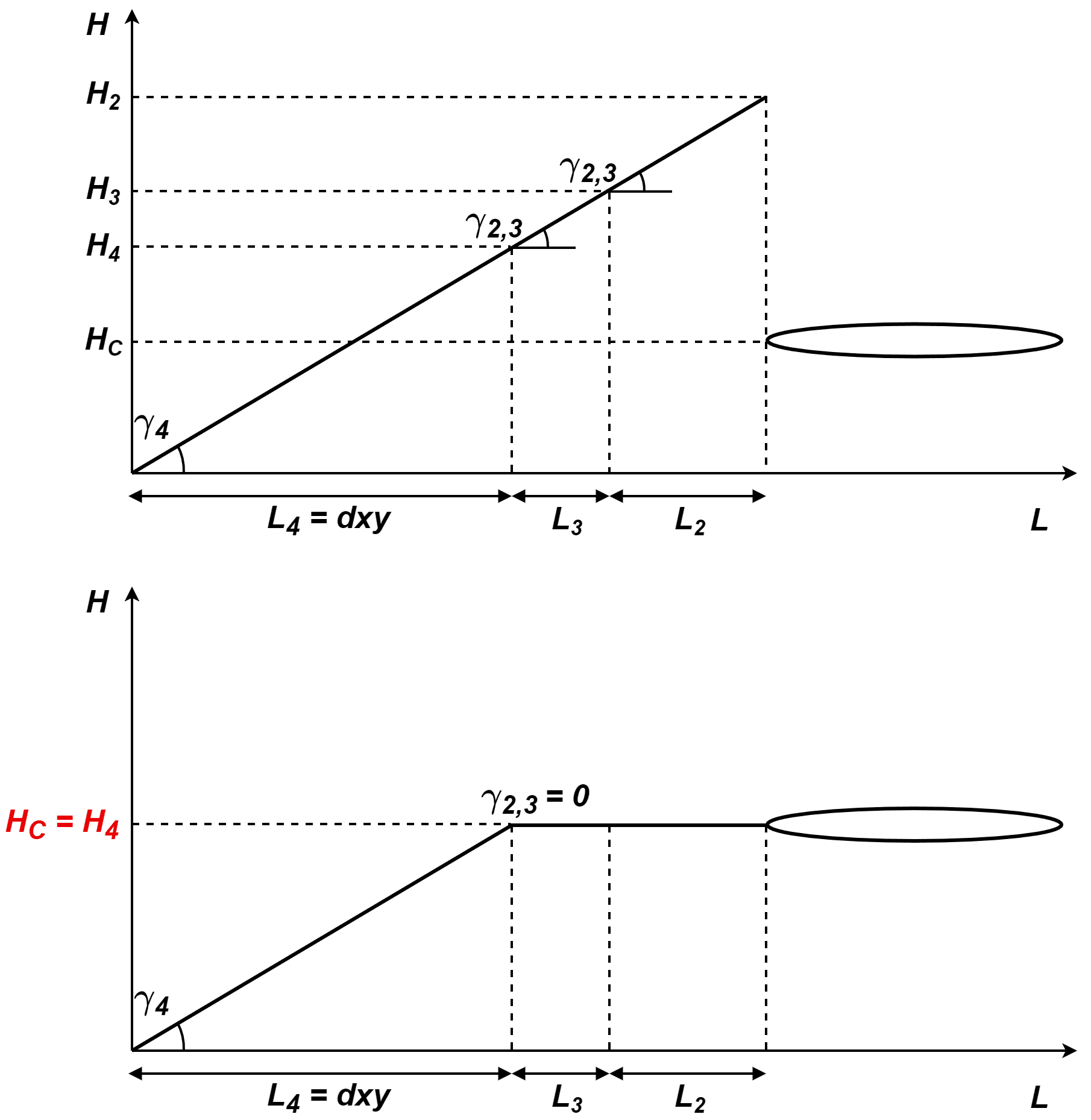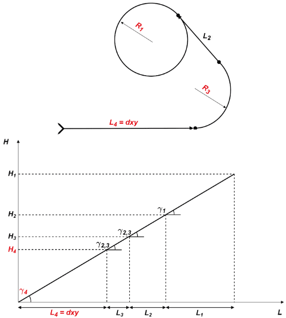 Patch 1: The patch length () will depend on the amount of loops on the loiter. The latter can go from 0 to more than 1 loop, depending on the altitude necessary to descend/ascend. Variables that influence this patch are , altitudes and , and Radius loiter (R1).