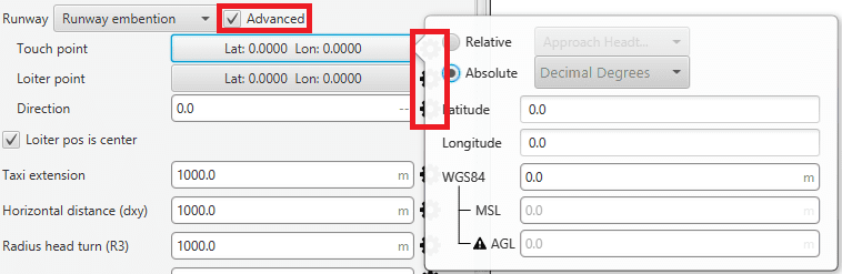 Runway: Here it is selected a runway previously configured, see the Runway option of Veronte Ops for more information.