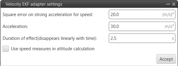 - Square error on strong acceleration for position: Under strong acceleration the variance for the position solution is changed to the specified value.