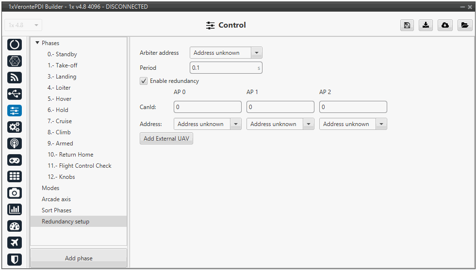 - Arbiter address: By adding the arbiter address, Veronte Ops will recognise it as part of a Redundancy setup, and it will also be possible to do HIL simulations (with Veronte HIL Simulator).