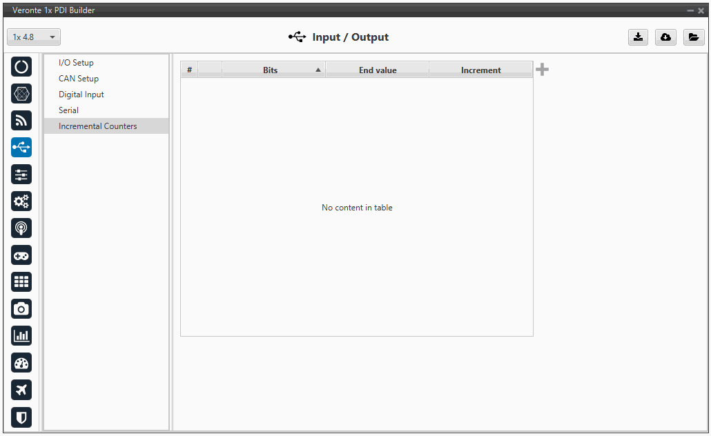 Incremental counters allow the configuration of Bits, End values, and Increments for selection within the Custom Message function.