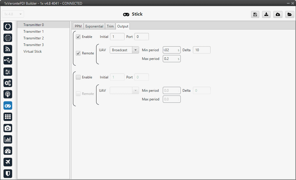 In this section, the stick configuration on 1x PDI Builder is explained.