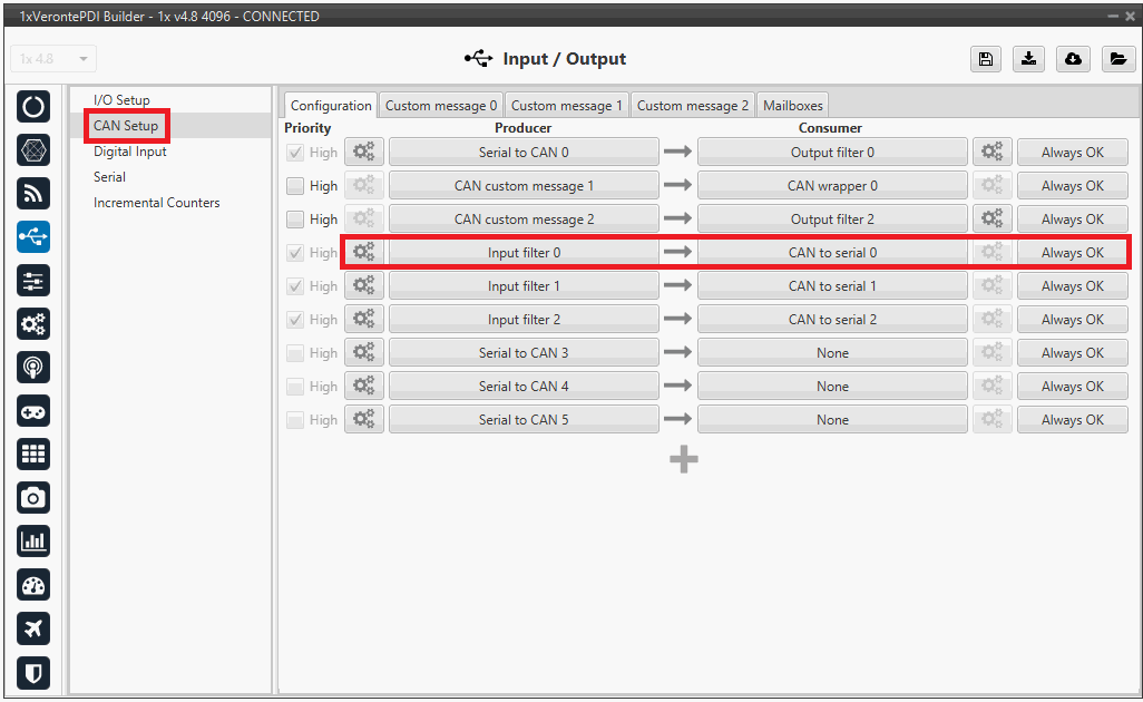 Go to Input/Output menu CAN Setup panel Configuration tab.