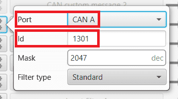 of the selected Input filter and configure it with the CAN port and CAN ID that matches those of the corresponding MEX configuration.Note