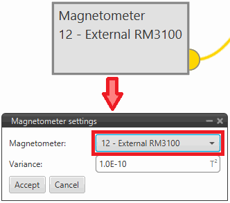 Configure the Magnetometer sensor block selecting External RM3100.