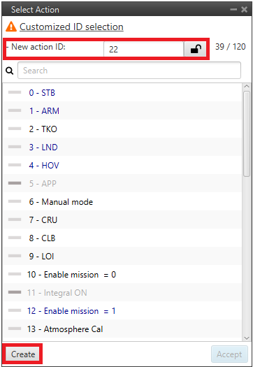 ), the user can assign the desired ID to the new action.Finally, click Create and the new action will be added.