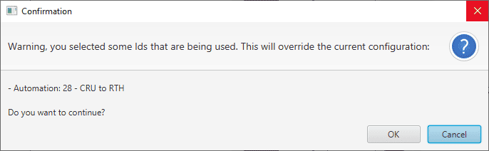When the user enters an ID that is already assigned to an automation, the following confirmation message will appear: