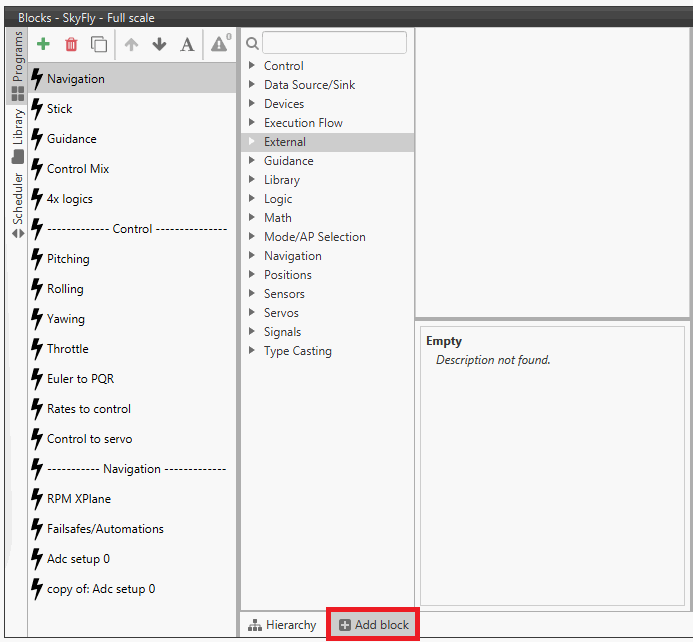 The resulting block, visible in the interface, requires the user to drag and drop it onto the adjacent panel.