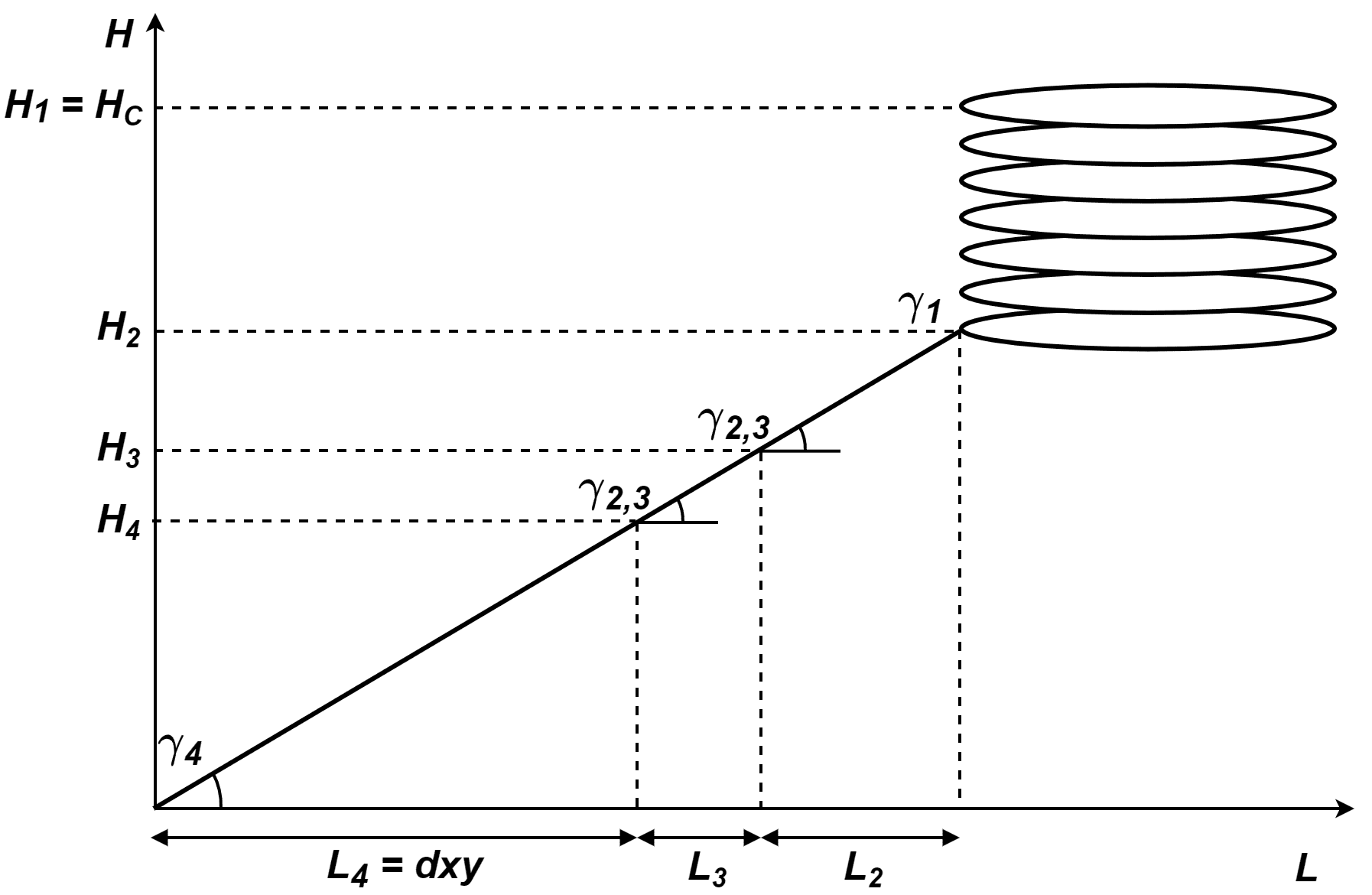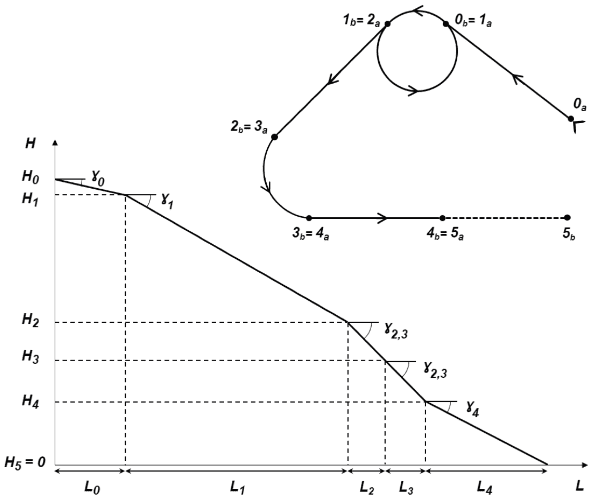Patch 1: The patch length () will depend on the amount of loops on the loiter. The latter can go from 0 to more than 1 loop, depending on the altitude necessary to descend/ascend. Variables that influence this patch are , altitudes and , and Radius loiter (R1).