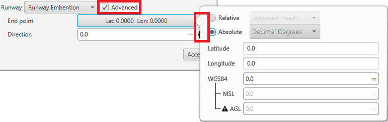Runway: Here it is selected a runway previously configured, see the Runway option of Veronte Ops for more information.