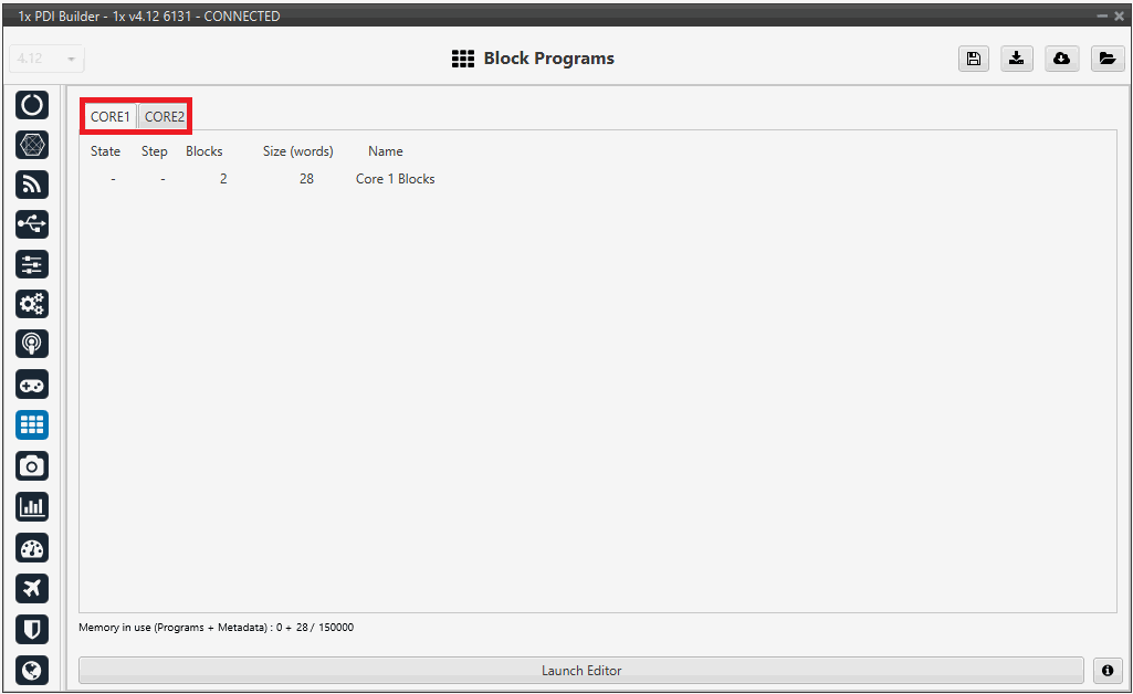 The Block Programs section is split into Core 1 and Core 2. See the respective sections for further details.