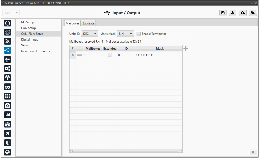 Since Veronte Autopilot 1x receives data on the CAN-FD Bus, it is mandatory to configure a certain number of mailboxes to store that data until the system reads it. A mailbox can be configured for multiple CAN message IDs as long as the mask is correctly set and messages are sent with enough spacing for the core to process them.