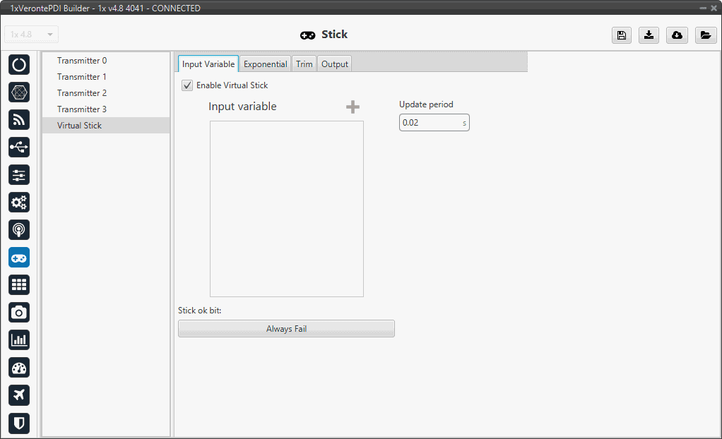 In this section, the stick configuration on 1x PDI Builder is explained.