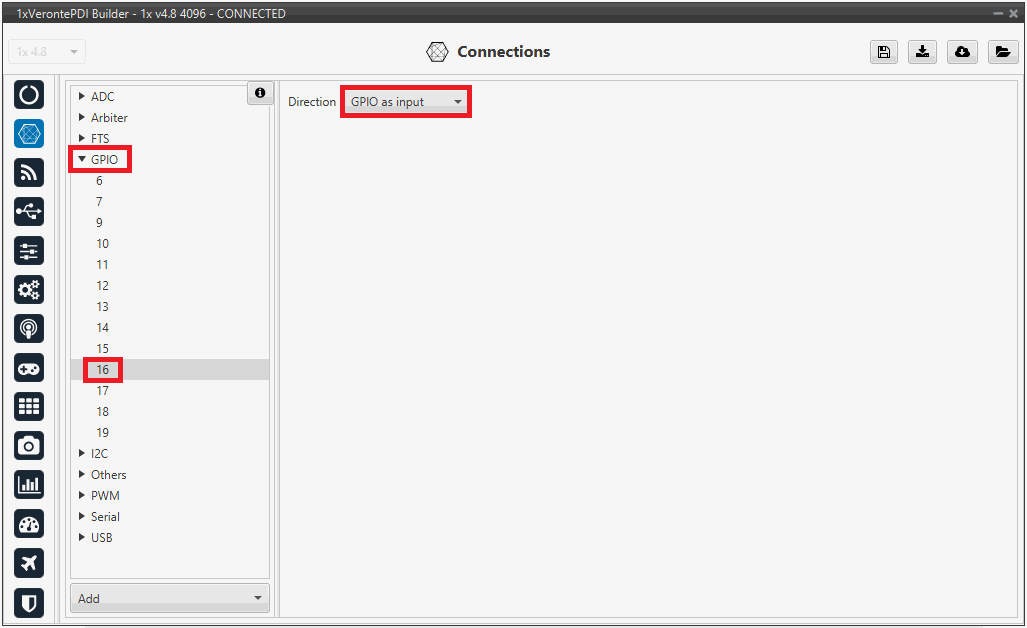 Go to Connections menu GPIO panel.