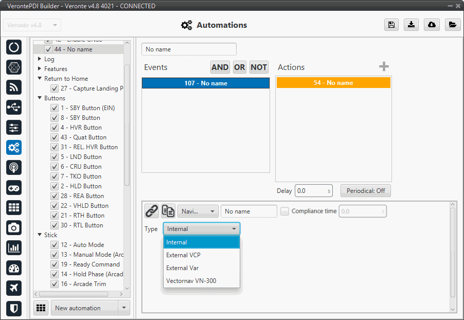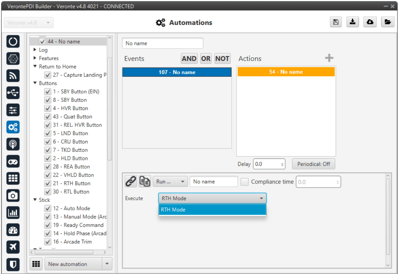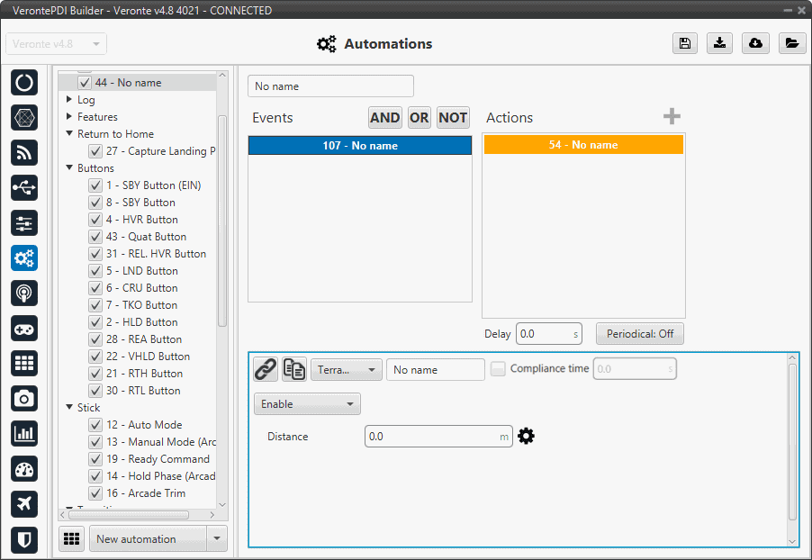 • Run + Distance/Time + Continuous: When the action is triggered, the timer will be started and will measure distance/time from that instant until the moment when the autopilot is turned off (or until another automation acts on the same timer).