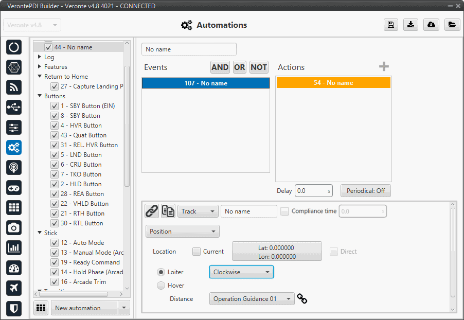 This action is used to configure a hover/loiter route (depending if it is a multicopter or an airplane) for the platform. Besides, there exists an option to follow a moving object.