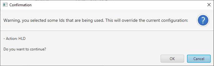 When the user enters an ID that is already assigned to an action, the following confirmation message will appear: