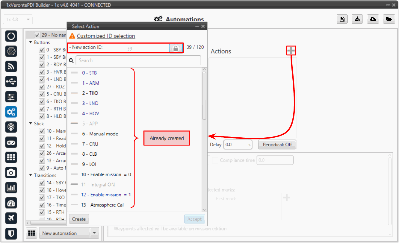 ), the user can assign the desired ID to the new action.Finally, click Create and the new action will be added.