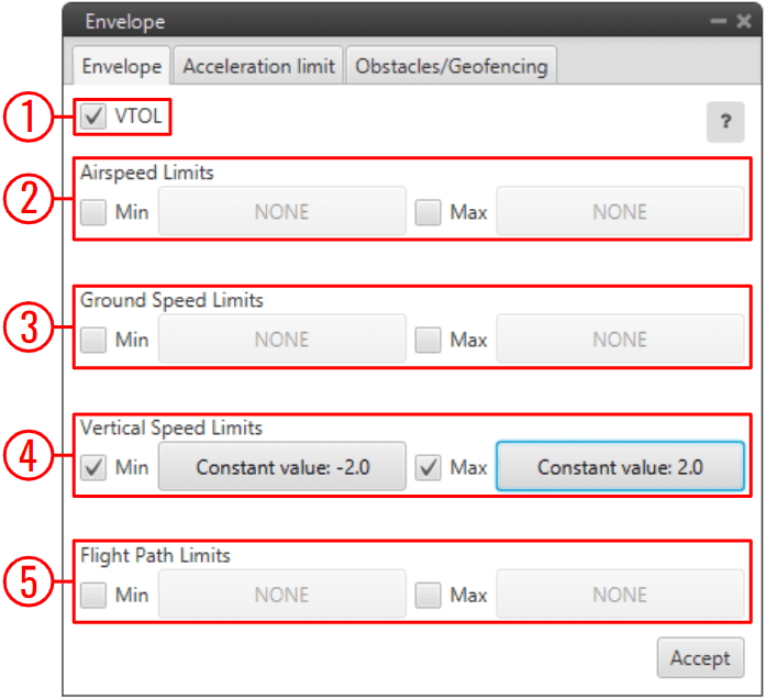 | Envelope | Used to define the safety limits of the aircraft, ensuring variables like speed and pitch stay within a secure operational range |