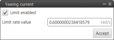 Yaw current block configuration - Limit enabled: When activated, the yaw rate limit will be set to a constant value indicated below.