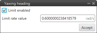 Yaw heading block configuration - Limit enabled: When activated, the yaw rate limit will be set to a constant value indicated below.