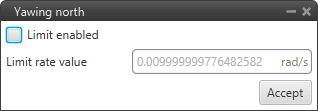 Yaw north block configuration - Limit enabled: When activated, the yaw rate limit will be set to a constant value indicated below.
