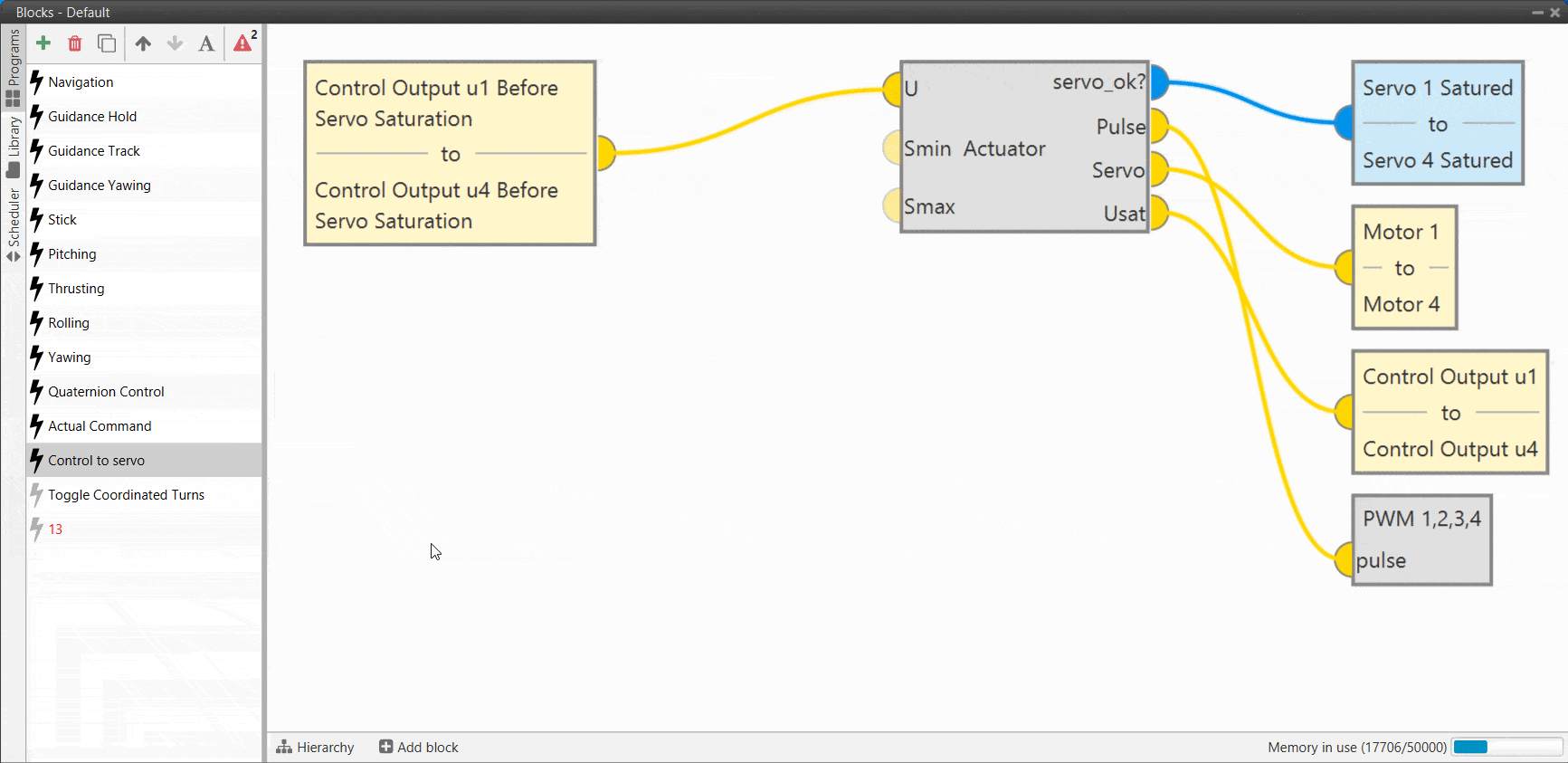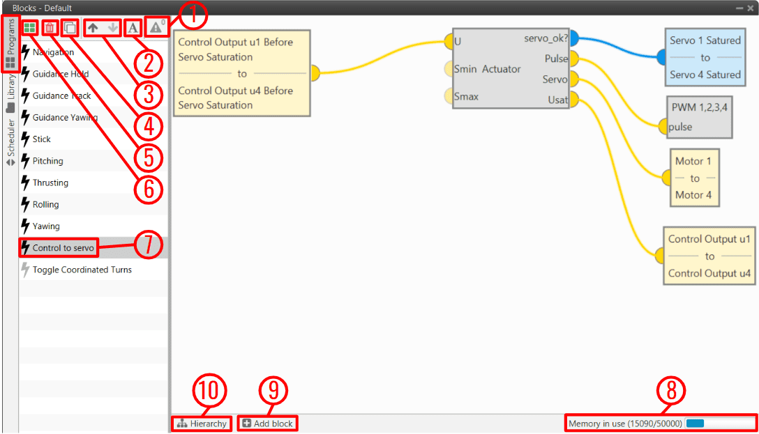 - Navigation: These blocks allow the autopilot navigation to be configured.