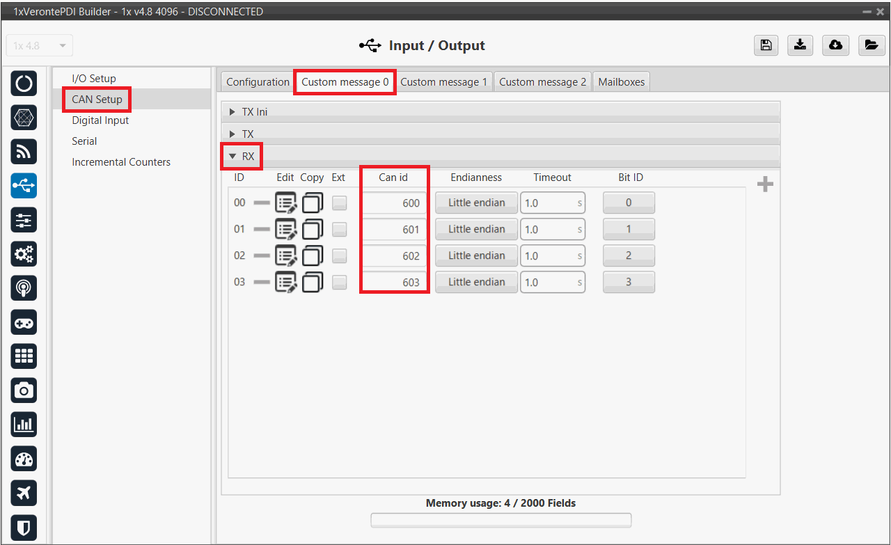 Since 1x PDI Builder allows up to 32 mailboxes, users should make sure to leave at least one mailbox free for transmission (TX).