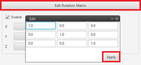 Gyroscope panel - Rotation matrix -