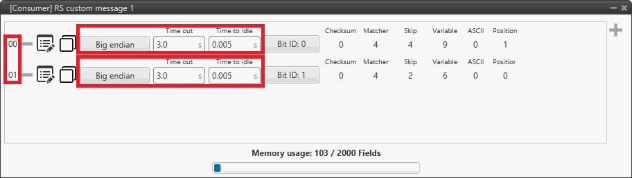 Connect the RS232 producer to a RS custom message consumer, in this example RS custom message 1 is used: