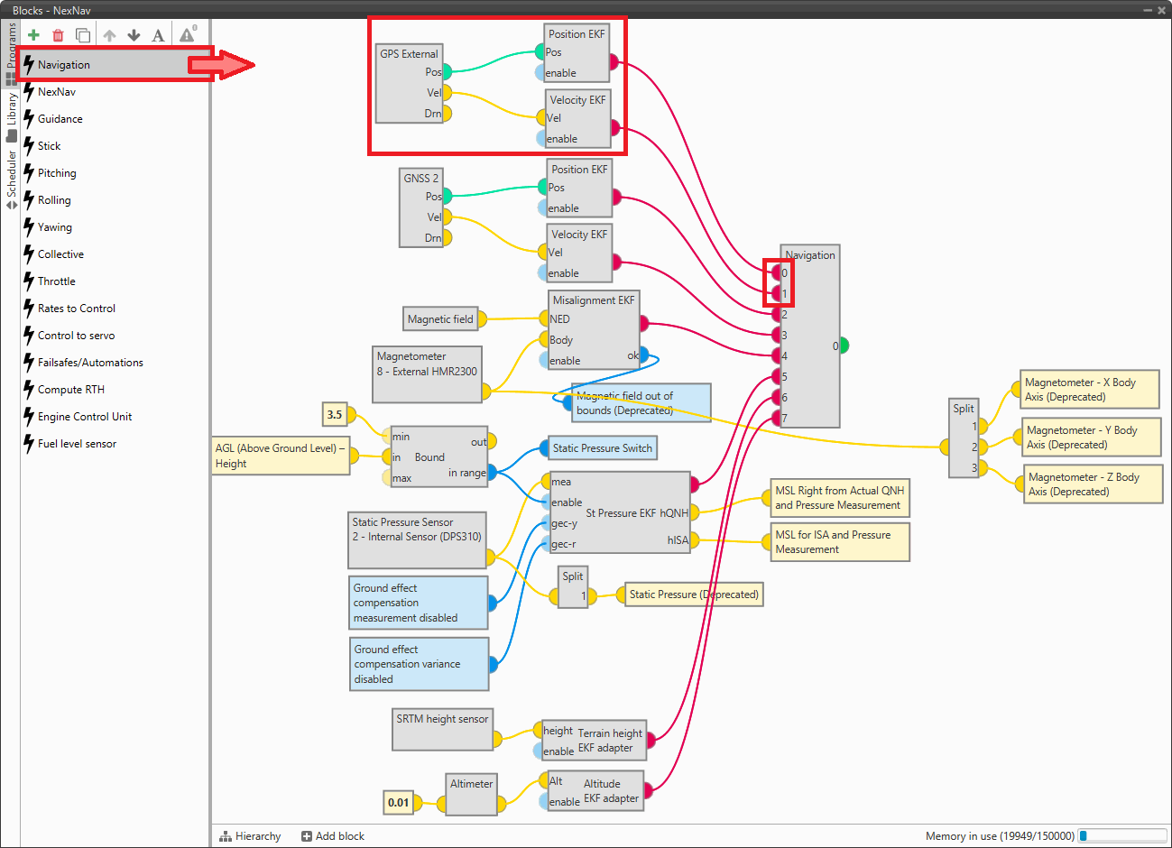 Finally, the outputs of these 2 blocks must be inputs to the Navigation block.