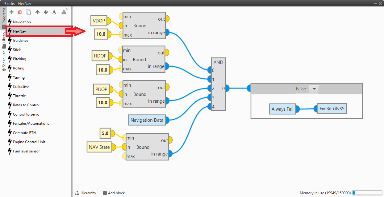 The following program is defined to check that the information coming from the external GNSS is valid and can be used as an input of the Navigation block: