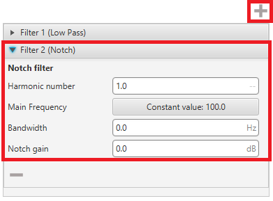 By clicking on the button, it is possible to add either a Low Pass or a Notch filter.