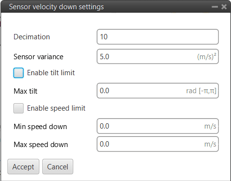 • Accelerometer gain: Manage the weight of the accelerometer raw readings when the given measurements are too dissimilar from the expected Earth's gravitational field.