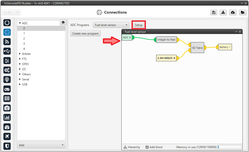 To convert the input ADC value to the physical variable it represents, the user needs to create a new program. See more information about programs in the Block Programs section of this manual.